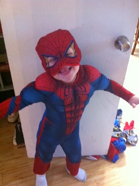 Hamilton was able to dress up. We let him wear an old costume to day care. And of course, he had to be silly too.